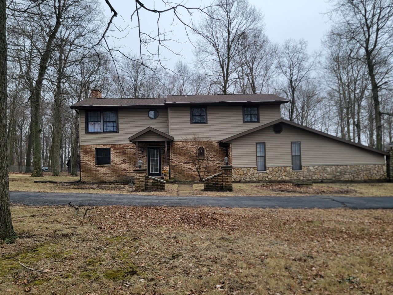 Welcome to this spacious 5-bedroom, 3-bath nestled on a just over an acre, surrounded by beautiful mature trees. A blacktop wraparound driveway provides ample parking and adds to the homes impressive curb appeal.Inside, youll find an open layout featuring a large kitchen, dining, and living area with stunning vaulted ceilings--perfect for both everyday living and entertaining. The living room is warm and welcoming with a cozy pellet stove and two sets of French doors that lead to private patios, creating seamless indoor-outdoor living.The kitchen is a true gathering space, complete with a charming wood-burning fireplace, abundant bar seating,...read more