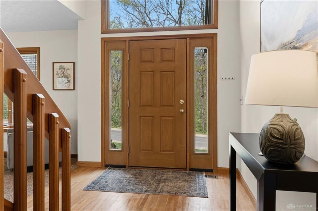 Tucked away on a semi-private, wooded lot in the desirable Sycamore Trails community of Springboro, this beautifully maintained home offers over 2,300 square feet of inviting living space filled with natural light and scenic views. A dramatic two-story entry sets the tone, leading into the living and dining rooms where front windows showcase peaceful wooded surroundings.The heart of the home is the stunning two-story great room, featuring a cozy wood-burning fireplace and a wall of windows that flood the space with light. Open to the great room, the spacious eat-in kitchen is designed for both everyday living and entertaining, complete with...read more